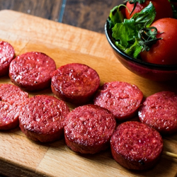 Sucuk, baharatlarla zenginleştirilmiş, genellikle dana veya kuzu etinden yapılan, kuru ve tütsülenmiş bir sosis türüdür. Kahvaltılardan sandviçlere kadar çeşitli yemeklerde kullanılır.